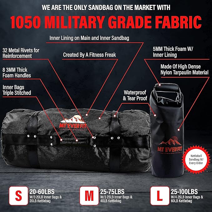 Sandbag Workout Bag & Sandbag Kettlebell Set - 1050 Cordura 8 Thick 3 Inner