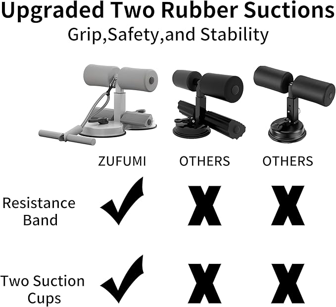 - 【Two Strong Suctions】Rely on our sit up machine's upgraded rubber suction chassis for superior stability during workouts.The ZUFUMI Sit-up bar with a 4.7in double-suction cup on the abs workout sit-up assistant device, measures 10.6 x 4.9 x 9.8in. It has a larger area, stronger suction, and double suction cups made of natural rubber to provide grip, safety, and stability.