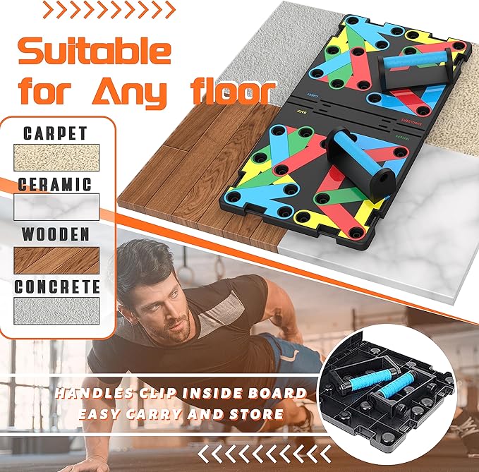 - Anytime, Anywhere: Lightweight, collapsible push-up board that can be used at home, outdoors, in the office or at the gym. stays stable on any surface
