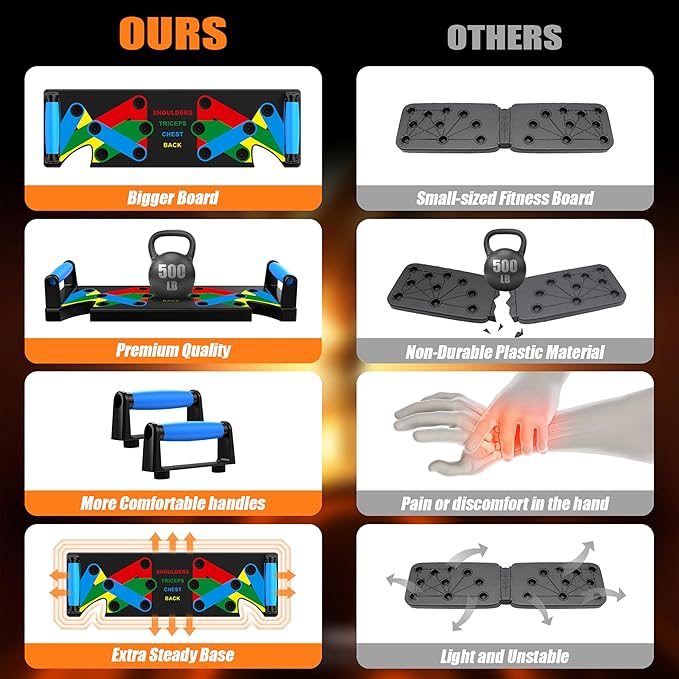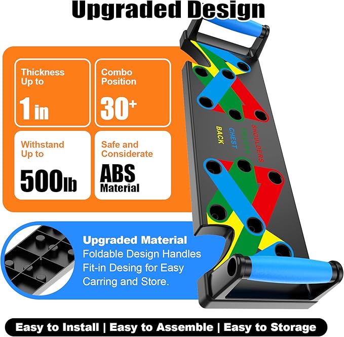 - UPGRADED QUALITY】The push up board is made of ABS Ductile plastic that with strong toughness.The non-slip push up handles provide a firm grip and distribute pressure evenly to reduce joint pressure. There are also added non-slip plugs to help stabilize your body while exercise. Best choice for father's day gift.