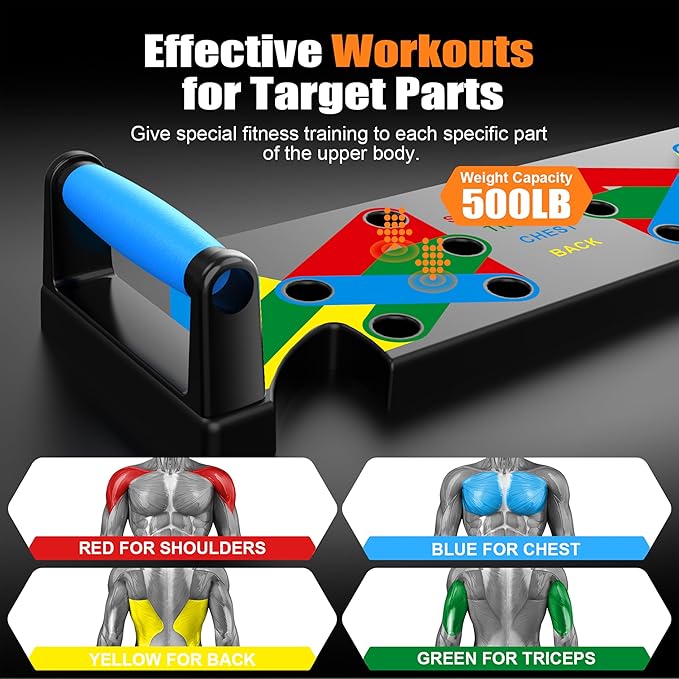 - 【EFFECTIVE WORKOUT】The push-up board is color- color coded guided and has 9 symmetrical postures for more efficient push up workouts.