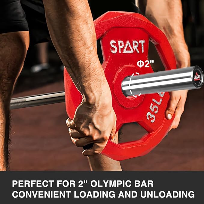 - 💪SIZE: SPART Upgrade Olympic weight plates can apply to all 2 inch Olympic bars. We have 2.5lb, 5lb, 10lb, 15lb, 25lb, 35lb, 45lb and different combinations.Each size comes in a different color,can be a great way to differentiate and decorate your home gym.You can choose what you want!
