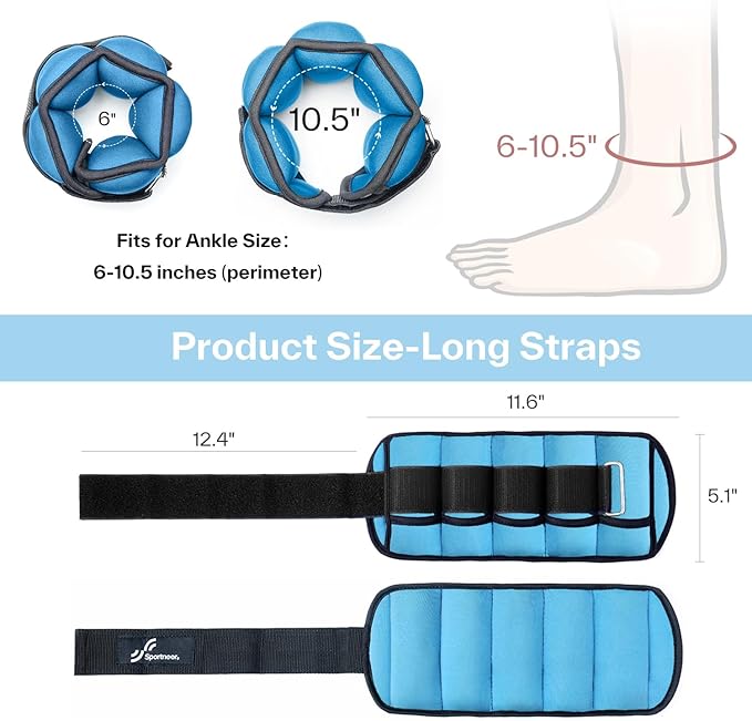 - QUALITY & COMFORT: The Sportneer leg weights are made of neoprene exterior, reinforced stitching, and sturdy outer trim. You could feel their softness when holding them in your hands.