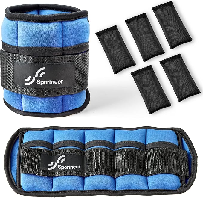 - ADJUSTABLE WEIGHTS: The Sportneer ankle weights come in pairs; each single weight comes with 5 removable sandbags, which weigh 0.4 LB. Each single weight can be adjusted from 0.5 lbs to 2 lbs, and one pair can be adjusted from 1 lbs to 4 lbs by adding or removing the sandbags.