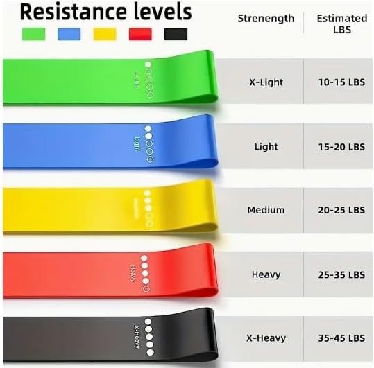 - RESISTANCE LOOP EXERCISE BAND - Five types of latex bands with different levels of resistance and thickness depending on the intensity of your exercise routine, a band exercise manual is included.