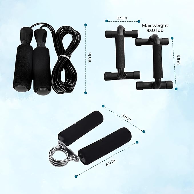 - Color : Ab Roller + Resistance Bands + Knee Pad + Push-up Bars + Jump Rope + Hand Grip,