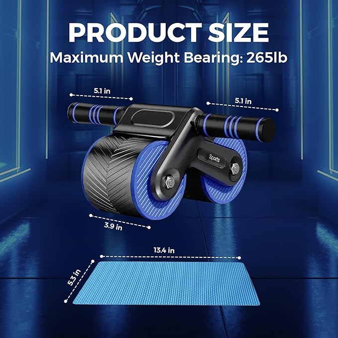 - DURABLE & SILENT – Crafted with a high-strength stainless steel shaft, our ab roller wheel can support up to 265 lbs. The 3.93" wide dual rollers feature a non-slip design, ensuring stability and preventing wobbling as you roll across any surface. The handle has foam padding to provide a secure grip during intense workouts.