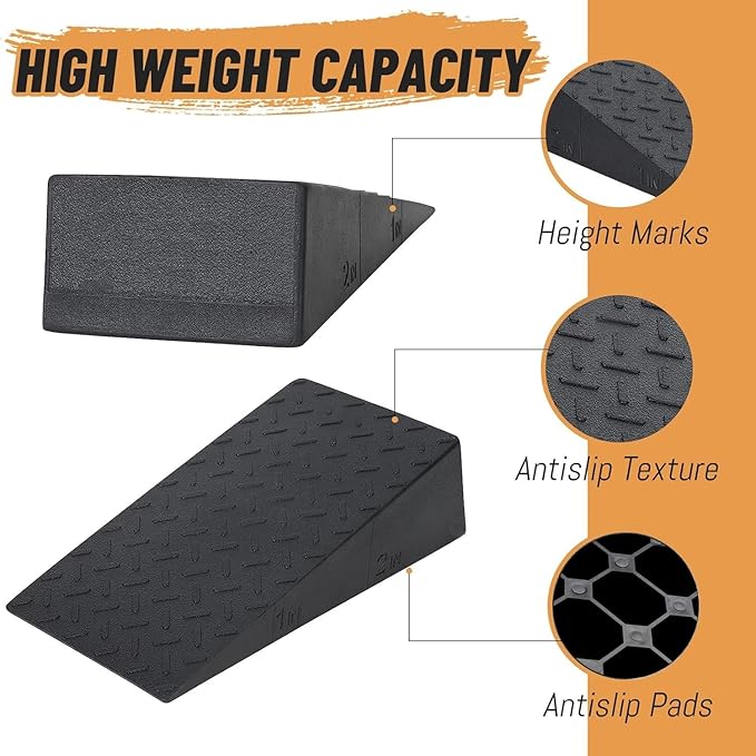 - 2 PCS Squat Blocks for Weightlifting with Height Markings - This is a separate heel wedge for squats that allows you to choose your own width compared to a one piece workout wedge for squats. In addition, there are 1-inch and 2-inch height markings on both sides of the physical therapy wedge. This way, you can adjust the width and height to suit yourself, and during the exercise process, you can maximize the comfort and muscle growth of the lower body.