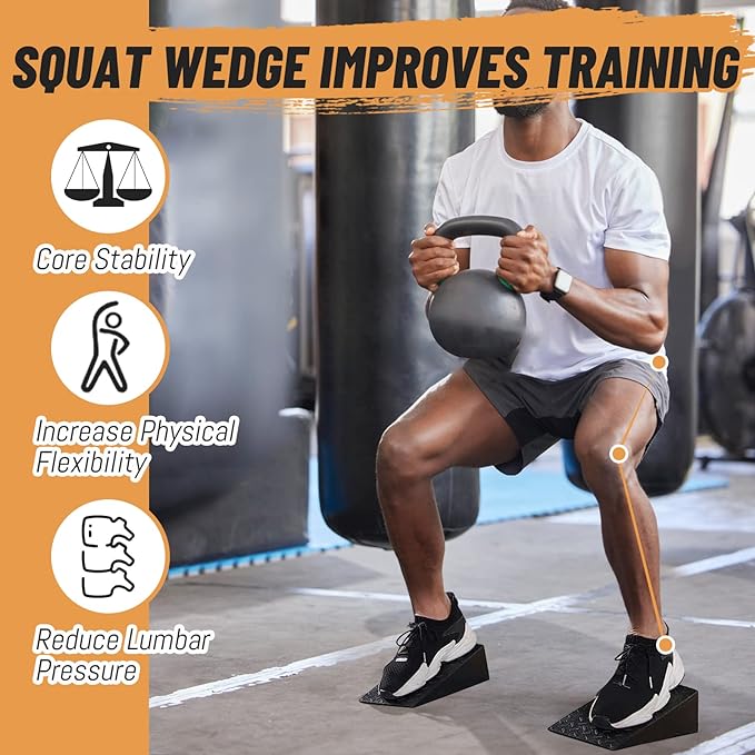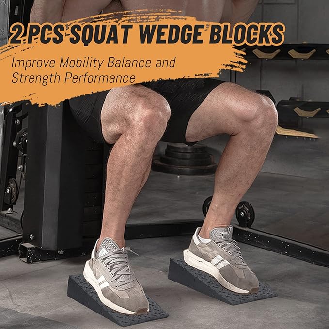 - Squat Wedge Boost Strength Performance - The slant board for squats can improve the poor mobility of your ankles, knees, and buttocks by raising your heel during stretching, allowing you to maintain the correct movement posture. Moreover, under the action of the squat wedge for heel elevated squat, you can release pressure from your lower back, knees, buttocks, and ankles while squatting, enhancing your core strength and reducing the chance of injury.
