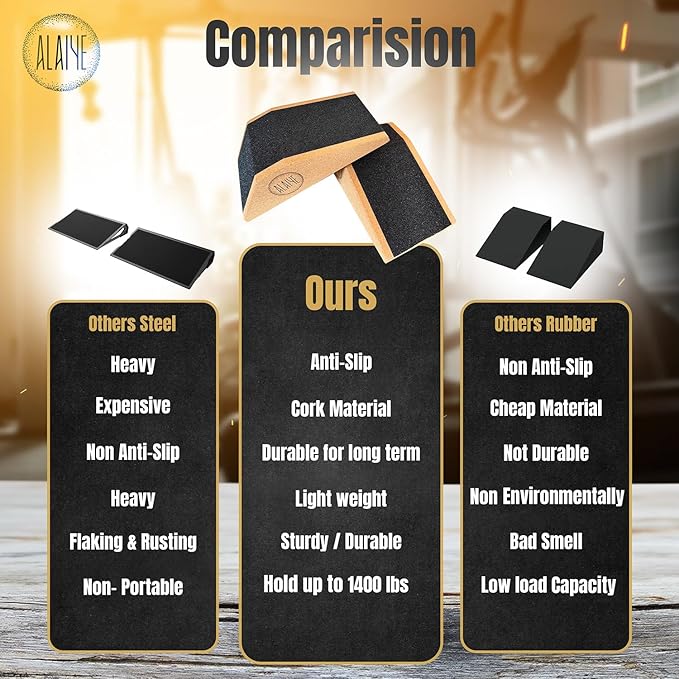 - 🏋🏽♀️ Perfect for Strength Training: ALAIYE Squat Wedge Blocks are designed to improve leg strength and hip flexibility during squats. Our squat stands pair perfectly with your strength training routine. Whether you're a beginner or an experienced athlete, these wedge blocks are essential for building muscle and increasing overall strength.