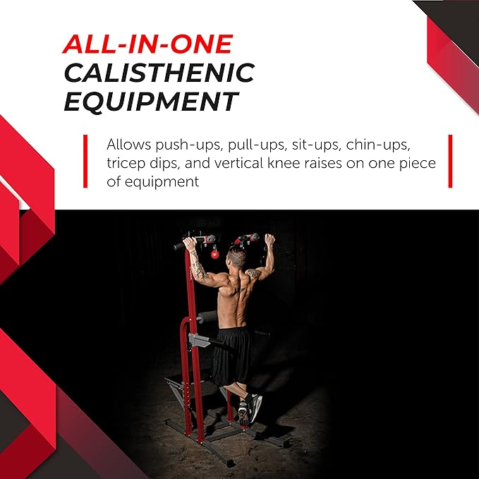 - STABLE AND SPACE SAVING - The durable steel frame of this dip bar tower supports powerful workouts of users up to 250 lbs. Our pull up bar provides multiple workout stations that fit easily in any indoor or garage space.