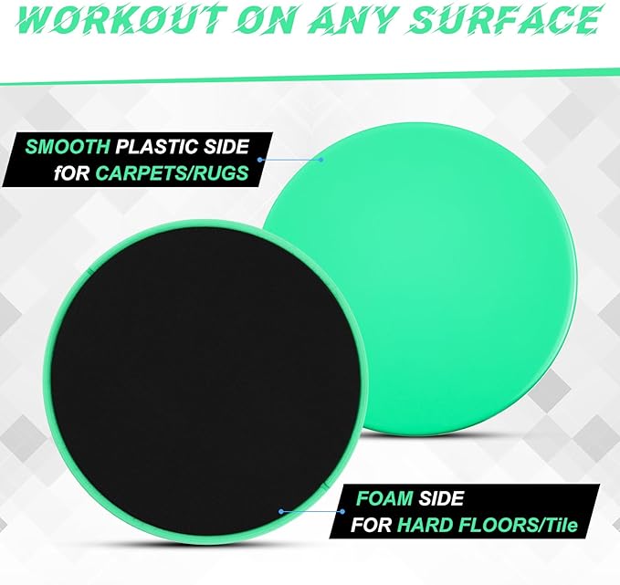 - Dual Sided Design: the gliding discs adopt dual sided design, plastic (smooth) surfaces can be applied for carpets, foam surfaces are applicable for hardwood floors or tiles, which can be adapted to a variety of venues and meet your different needs, providing a good aid for your training