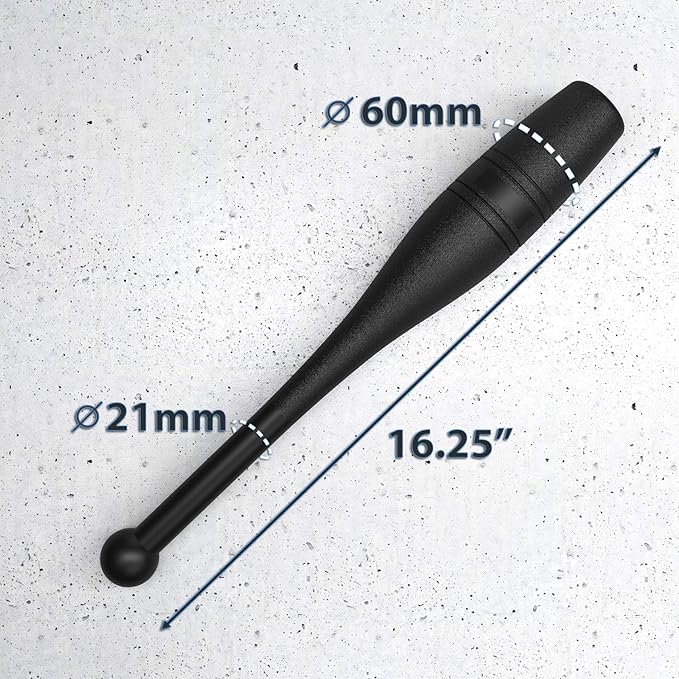 - ★ WHAT’S IN THE PACKAGE ★ – Synergee Indian Clubs are sold in pairs, are made from steel, and finished with a black matte coat. This pair contains (2) 1 lb Indian Clubs, measuring 16.5” long and each has a 21 mm diameter handle and 60 mm at the thickest part of the weighted end.
