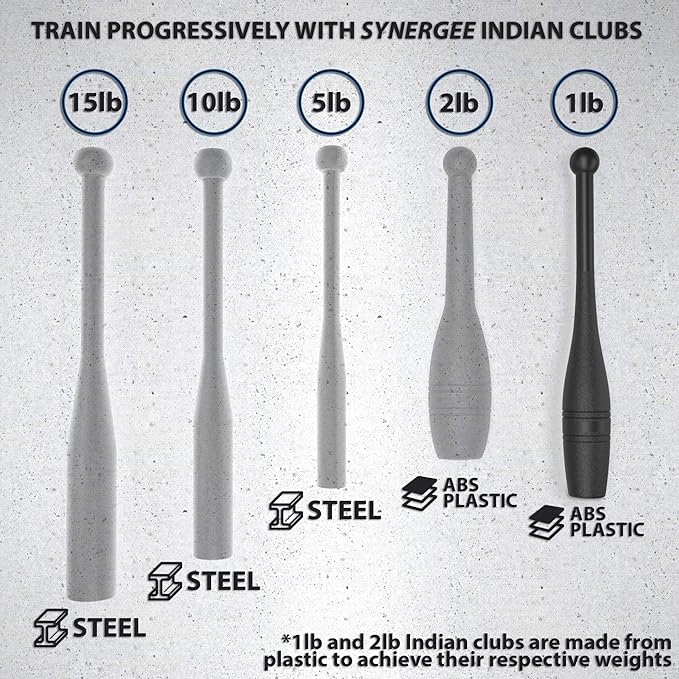 Synergee Indian Clubs 1lb 2lb, 5lb, 5lb, 10lb 10lb & 15lb. Power