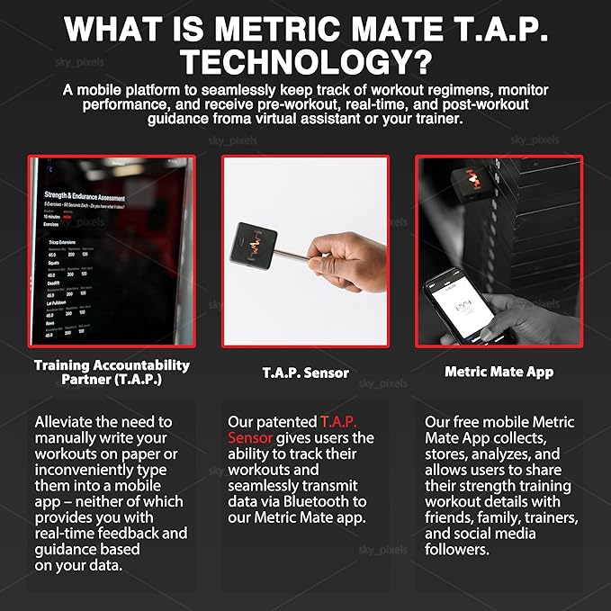 - Universal Compatibility: Whether you’re a fan of free weights or rely on machines, Metric Mate's T.A.P. sensor is designed to adapt and upgrade.