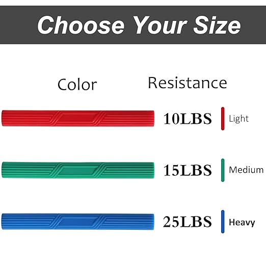 - Suitable for All Fitness Levels: Flex exercise bar offers different resistance levels, red has a resistance of 10 lbs, green has a resistance of 15 lbs, and blue and red has a resistance of 25 lbs. Whether you're a beginner or an advanced fitness enthusiast, you can adjust the resistance to match your current strength and gradually increase it as you progress, ensuring a challenging and effective workout every time.