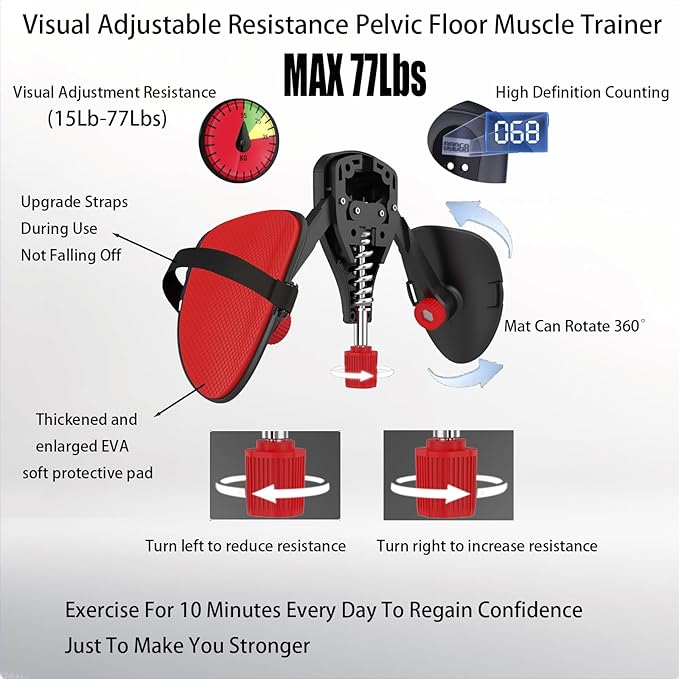 - 🤸♂️【Excellent upgraded design】: Our thigh trainer uses high-end materials such as PP/PA/EVA/alloy steel. The 360 ° rotatable structure is suitable for any leg shape and can adjust resistance between 0-77 pounds. High definition intelligent counting allows you to see every progress you have made. The design of thickened foam on both sides can effectively protect the user's muscles from injury during exercise. Upgrade the strap design to ensure it does not fall off during movement.