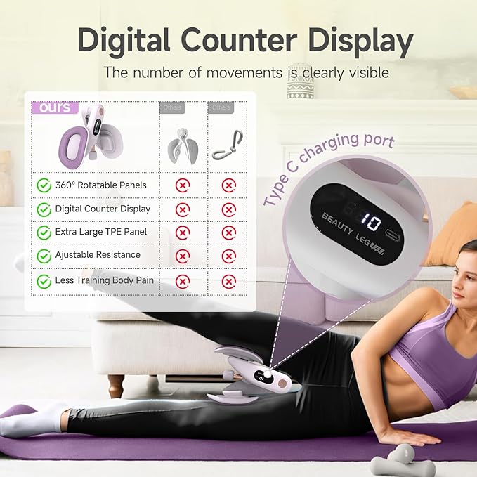 - Clearly Visible Counting Screen: The built-in digital screen of the inner thighs exercise equipment displays the number of exercises in real-time, giving you a clear view of your workout progress. This helps you plan your fitness goals scientifically and improve workout efficiency.