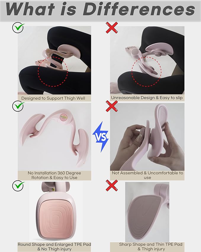 - SOFT AND CUSHIONY TEXTURE TO FEEL LIKE AN EXTENSION OF YOURSELF - We made unique design of Thigh master not to pinch or hurt your skin. you can exercise with our thigh master for long time. None-slip pads area is large enough to cover your thigh around and offer 360° adjustment. make your body slim and muscle easily!