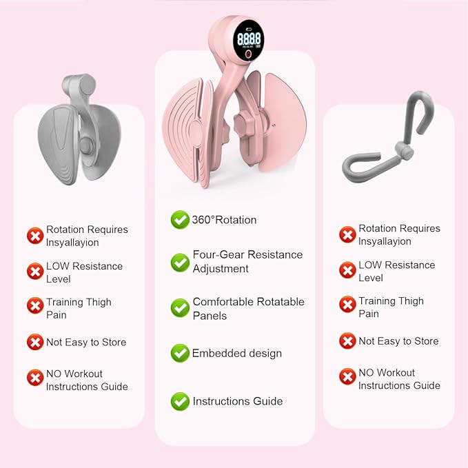 - 360° Rotatable Ergonomic Design: The innovative triangular design with a 360° rotating panel ensures maximum comfort and flexibility during every workout. Whether you're toning your thighs, glutes, or arms, this pelvic floor exercise device delivers comprehensive muscle toning.