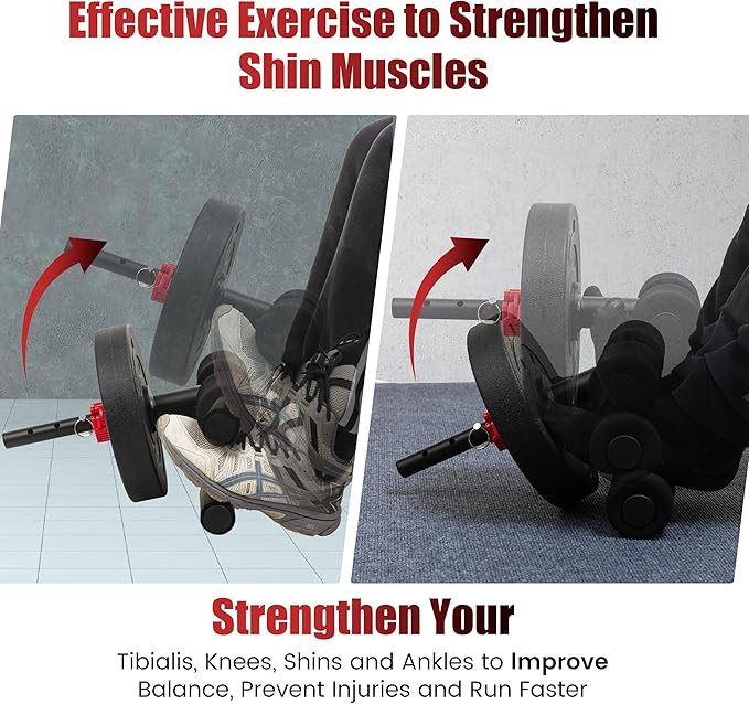 - Adjustable for All: Tailored to fit any foot size, our bar's adjustable design ensures a perfect fit for effective tibialis training. The secure clamp keeps weights firmly in place, offering a stable and effective workout for users of all levels.