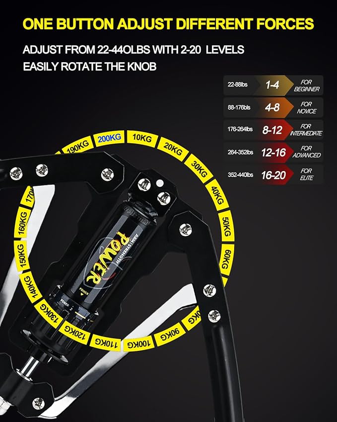 - 【Adjustable Resistance】No matter a novice/veteran, our twister arm exerciser meets the whole fitness career. Easy to use, rotate the knob 2-20levels left/right to adjust the resistance range 22-440lbs. Choose suitable intensity to avoid muscle strain