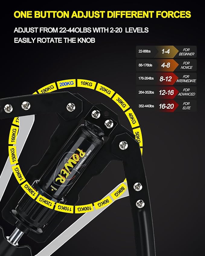 - 【Adjustable Resistance】No matter a novice/veteran, our twister arm exerciser meets the whole fitness career. Easy to use, rotate the knob 2-20levels left/right to adjust the resistance range 22-440lbs. Choose suitable intensity to avoid muscle strain