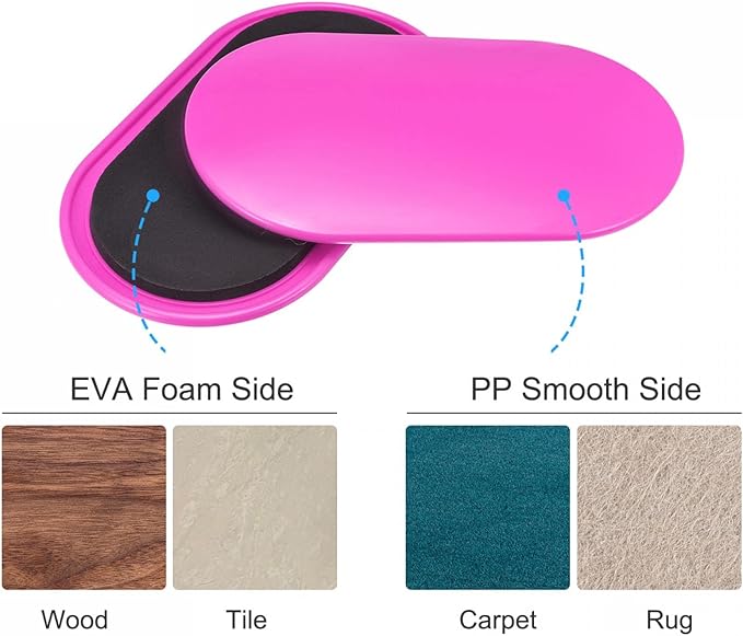 - DOUBLE SIDED DESIGN: The oval glider disc is in dual-sided design which suits workouts on all surfaces. The durable EVA foam side is for hard floors like wood or tiles, and the PP smooth side can be used on fabric floors like carpets or rugs