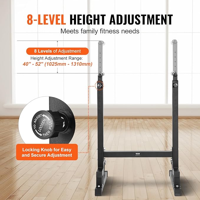- Adjustable Height: Say goodbye to complicated setups! This dip station makes assembly a breeze in a few minutes, letting you adjust its height across 8 levels. Whether you're tall, short, or in between, finding your perfect workout height (ranging from 40"/1025 mm to 52"/1310 mm) has never been easier.