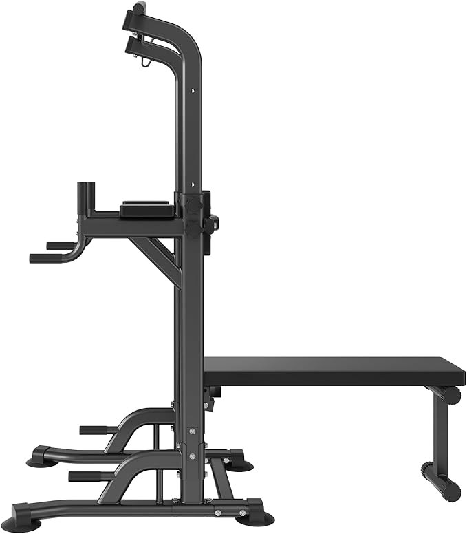 - Ergonomic Power Tower: Prioritizing your comfort and safety, our strength training dip station comes with 2-level adjustable weight bench that can be adjusted to incline and flat state according to different workout needs. High-quality PU elbow pads protect elbow joints, and premium backrest helps correct exercise posture and protect your spine.