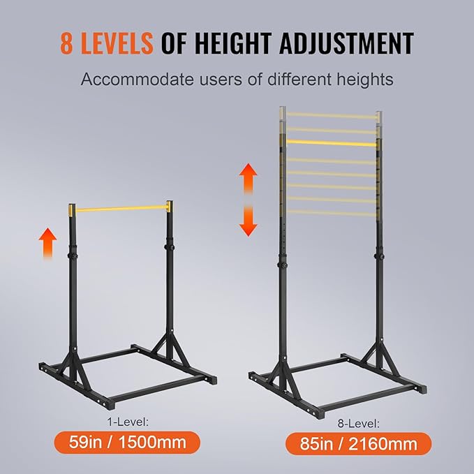 - Adjustable Height for All: Enjoy flexible height adjustment with 8 levels ranging from 59 to 85 inches, catering to users of different heights. Suitable for adults, teenagers, fitness enthusiasts, and seniors, it promotes family participation in workouts and overall fitness.