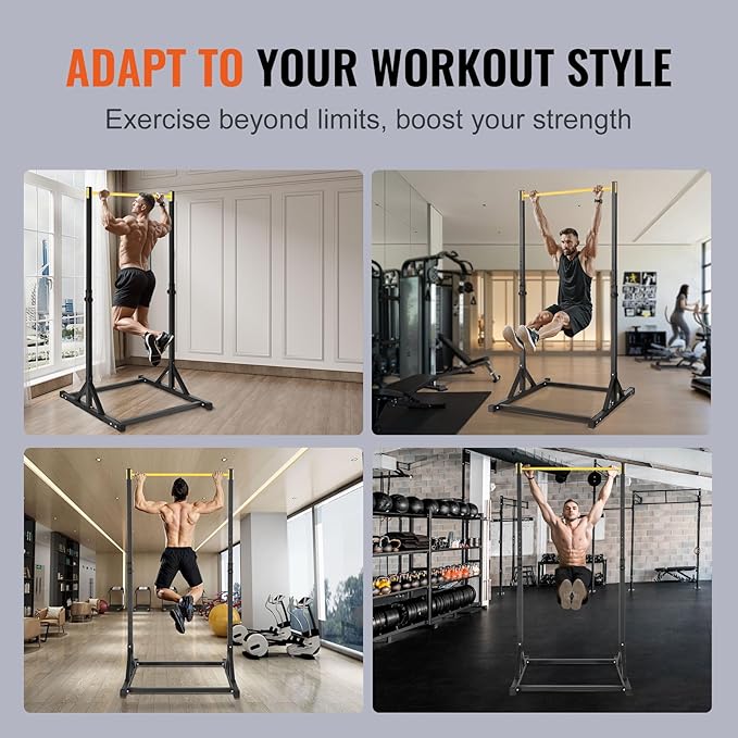 - Enhanced Sturdiness and Stability: VEVOR power tower dip station is constructed from rust-resistant carbon steel, featuring a powder-coated surface for lasting durability. With a weight capacity of up to 330lbs, reinforced steel pipes, and a stable H-shaped base with non-slip feet, it ensures steady and secure workouts.
