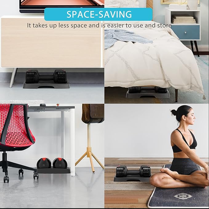 - SPACE-SAVING - This adjustable dumbbell is more compact than ordinary dumbbells, occupies less space, and is easier to use and store; 1 set of dumbbells is equivalent to 12 dumbbells; You don’t need to worry about having too many dumbbells will make your home messy, this dumbbell can keep your home well organized