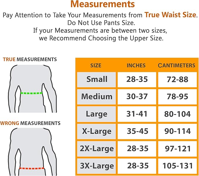 - PROFESSIONAL CUSTOMER SERVICE - We will assist you DURING 12 MONTH after the date of purchasing. You can contact us if you have any issues with size to get a replacement. PAY ATTENTION TO TAKE YOUR MEASUREMENTS FROM TRUE WAIST SIZE. DO NOT USE PANTS SIZE.