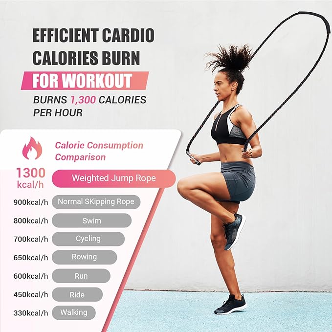 • [QUICK FITNESS GOALS] Scientifically proven, jumping for 10 minutes with our 1.25 lbs weighted jump rope for women is equivalent to jumping for 30 minutes with a regular jump rope, with double the weight and several times more fat burning, this 1.25 lbs weighted jump rope for women works your core muscles 10 times more effectively than a standard jump rope, ensuring you gain strength quickly with an effective heavy jump rope workout.