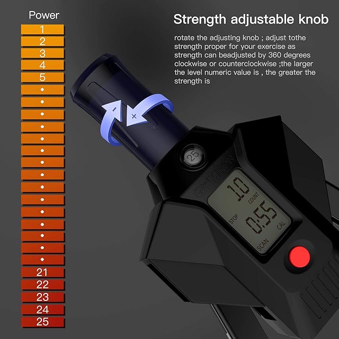 - 【Exercise method】:Three-function LCD display-monitor your time, times and calories,Muscle training (men) to increase resistance (15-25 gears), (women) to increase resistance (5-15 gears) at normal speed (complete a round in 2 seconds), 20-30 each time, 3 times as a group, half an hour Do 3-6 groups inside. Unisex weight loss method:Reduce the resistance (1-9 gear), about 2 rounds per second,60-200 times according to each person's physical strength, themore times, the more calories