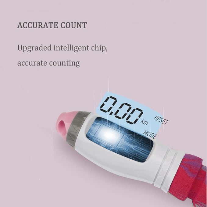 - Workout Jump Rope With Counter :This smart jump rope can accurate record Jumping times, kilometers and calorie consumption. A small info screen on one handle is present to display your calorie and related data.You can grasp your Jump times, calories burned, to reach your fitness goal .