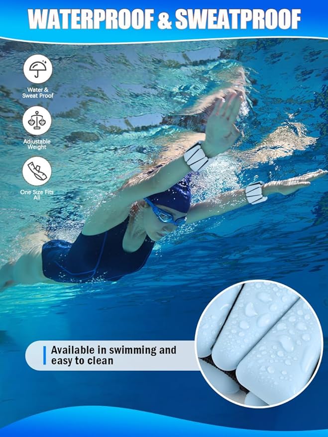 - WATERPROOF & SWEAT-PROOF: The surface of this ankle weights is made of all-inclusive silicone layer which is soft and skin friendly. The waterproof and sweat-proof design makes it easy to clean and odor free.
