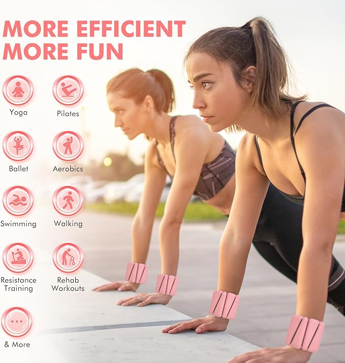 - [Multifunctional Exercise and Recovery Solution] These versatile, adjustable wrist and ankle weights take men's and women's workouts and recovery to new heights. The weighted bracelets can enhance Pilates, yoga, ballet, aerobics, boxing, walking, home workouts, core training, rehabilitation, etc. Consistent customizable challenges help burn more calories, improve flexibility, and enhance overall effectiveness of indoor and outdoor training and recovery.