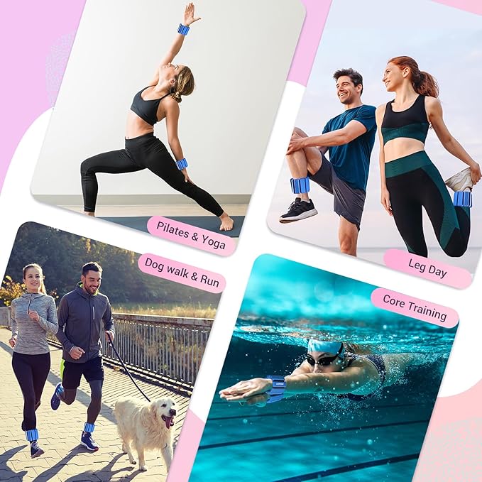 - [PERFECT FOR EVERYDAY FITNESS] Our wearable adjustable wrist and ankle weights set of 2 with a total weight of 2LBS are perfect for women, men and beginners. It adds weight to your arms, wrists and ankles, and you can wear the weight bracelet for Pilates, yoga, swimming, aerobics, running and walking and more. These Pilates weights create constant resistance to help you burn more calories and improve your indoor or outdoor training.