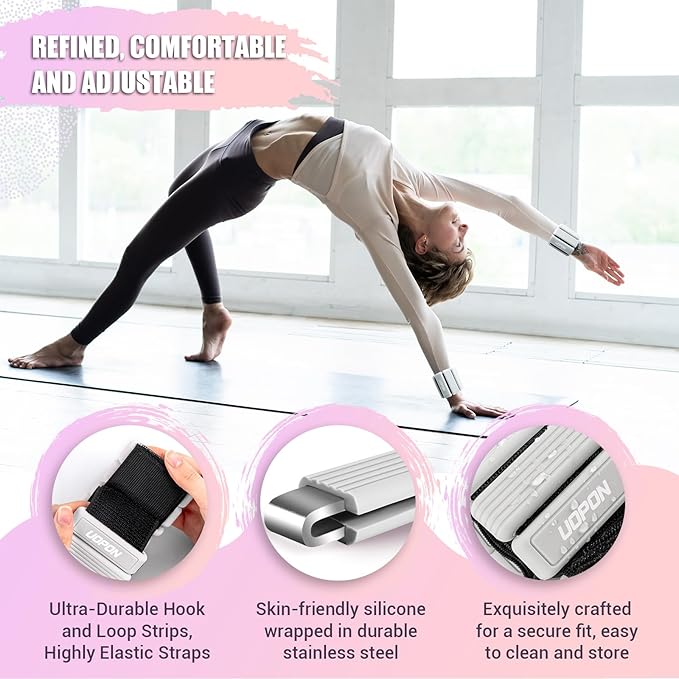 - [KEEP MOVING, STAY HEALTHY] The Pilates wrist and ankle are crafted with skin-friendly silicone-wrapped premium stainless steel, Durable and sweat-proof, washable and reusable. This weighted bracelet features adjustable elastic straps and heavy-duty hook-and-loop strips to deliver a customized, comfortable fit for your wrists or ankles. Whether you're headed to the gym or running daily errands, it provides perfect comfort and unrestricted movement.