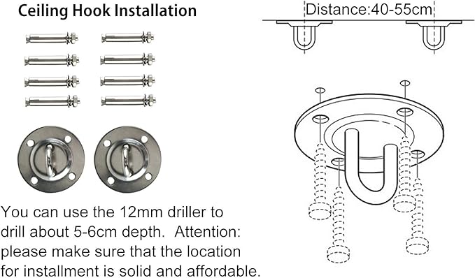 - Package include: 1 x Yoga Hammock(2.5m*1.5m), 6 x Foam handles, 4 x Carabiners (Installed), 2 x Extensions Straps, 2 x Stainless Steel Ceiling Hooks, 8 x extension screws, 1 x Storage Cloth Bag.