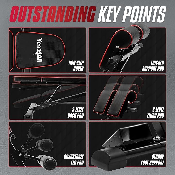 - LONGER BACK PAD: The workout bench features a 47" long back pad with an extended head pad, offering great support for users of all sizes, including taller individuals & especially beneficial for bench press exercises
